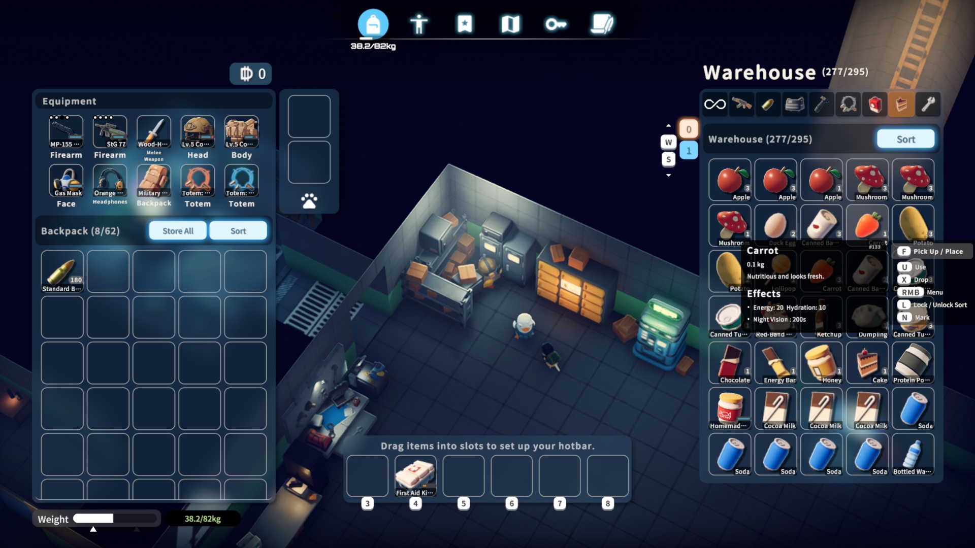 在《Escape From Duckov》中,您需要管理兩個主要區域來應對飢餓和口渴:您的能量和水合表。這些在遊戲的每個時刻都會出現在屏幕的左下角。當你走出基地時,兩個儀表都開始下降,一開始以固定的速度下降。當兩個儀表均為零時會產生負面影響,即: