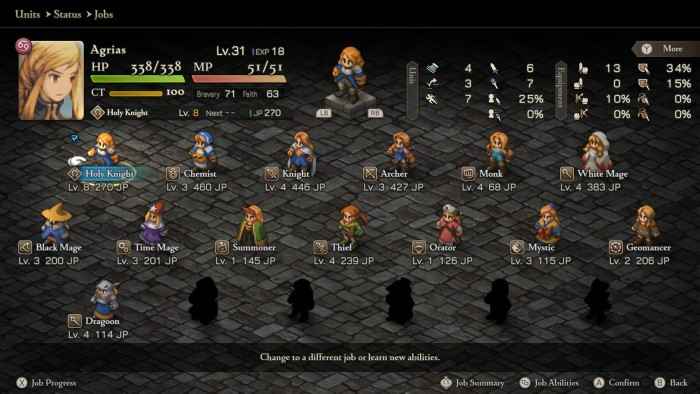 《最終幻想戰略版:伊瓦利斯編年史》增強版的其他一些顯著改進是能夠標記拉姆扎軍隊中最喜歡的單位。還可以製作特定於工作的最喜歡的設備裝載。現在還有一個“優化設備”選項。最後,現在最早可以在第 4 章中招募《最終幻想 VII》中的克勞德。這是獅子之戰版本中的一個改動。據我所知,經典版本的翻譯以及能夠更早地招募克勞德是《最終幻想戰略版:伊瓦利斯編年史》中唯一的獅子之戰功能。同樣,《獅子之戰》的新角色或新職業在《最終幻想戰略版:伊瓦利斯編年史》的經典版或增強版中都找不到。