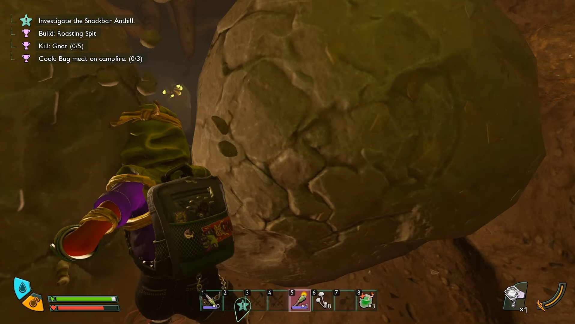 使用紅螞蟻蛋和渦輪光盤,您可以製作您的第一個坐騎,紅螞蟻越野車。然而,要製作坐騎,您還需要收集雜草莖並進入孵化場。獲得坐騎後,您可以返回 Snackbar Anthill 並用它來咀嚼左側叉子上的死根,以找到一些原始科學。