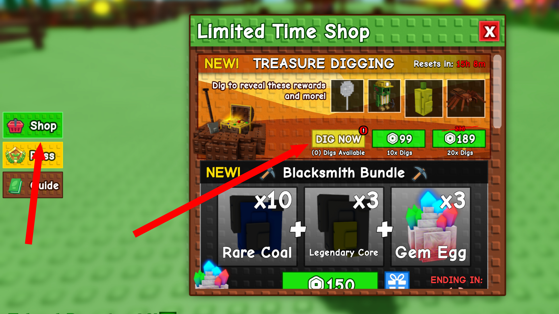 除了哥布林礦工的被動之外,獲得挖掘的唯一其他方法是等待幾個小時自動重新填充或使用挖掘飾品。或者,您可以使用 Robux 隨時獲得 5 個挖掘。