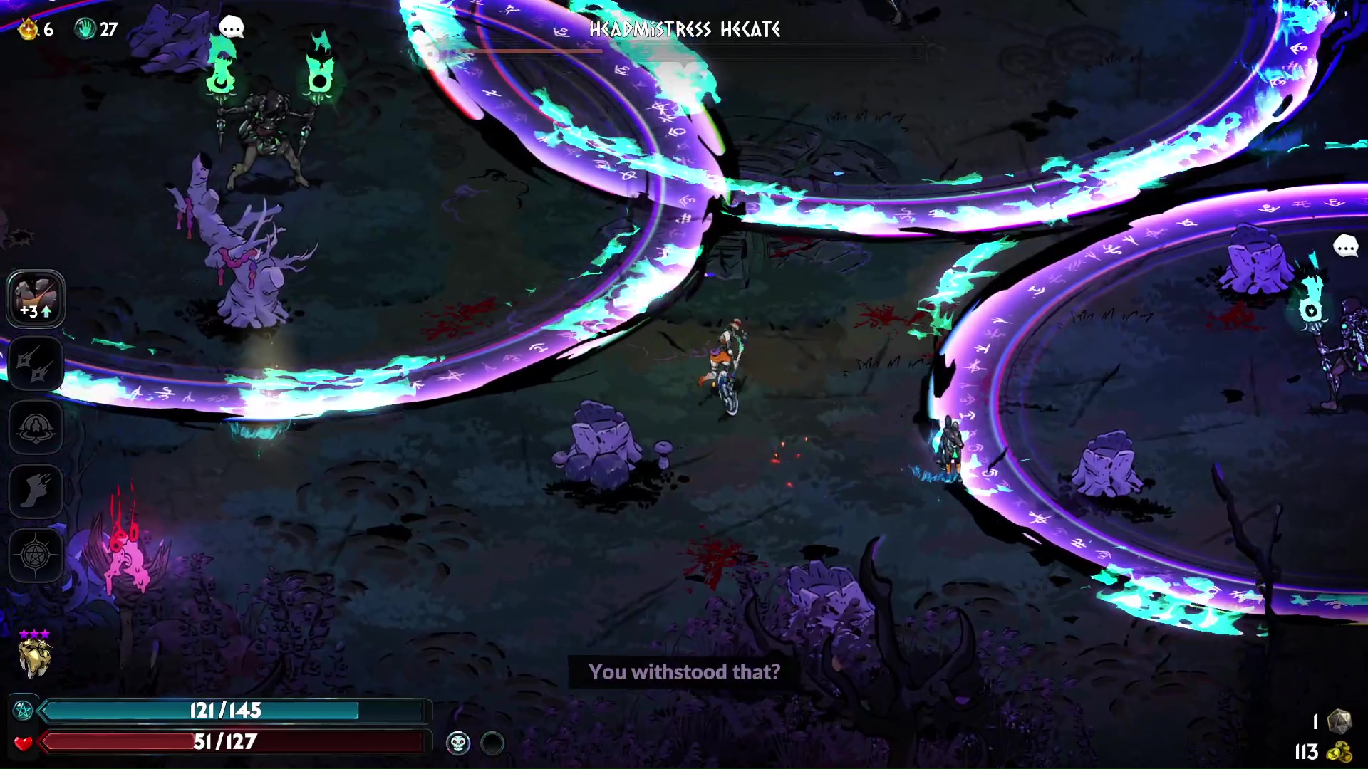 赫卡忒女校長有不少秘技,但她不會全部使用。根據您的跑步情況,她每次只會使用其中的一些。概括地說,她的攻擊可以分為三種類型: