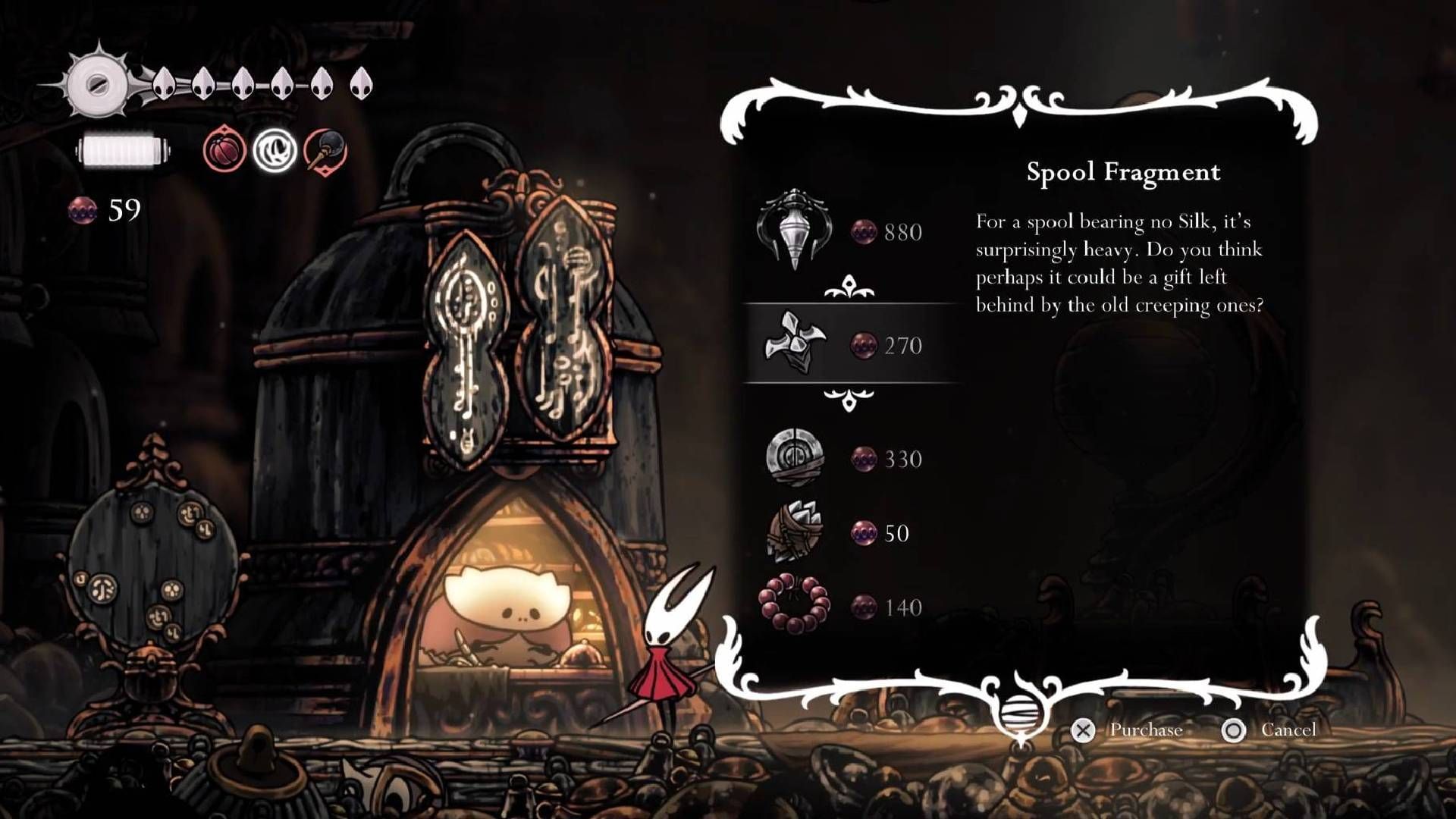 以下是您可以從《空洞騎士絲歌》中弗雷的商店購買的物品: