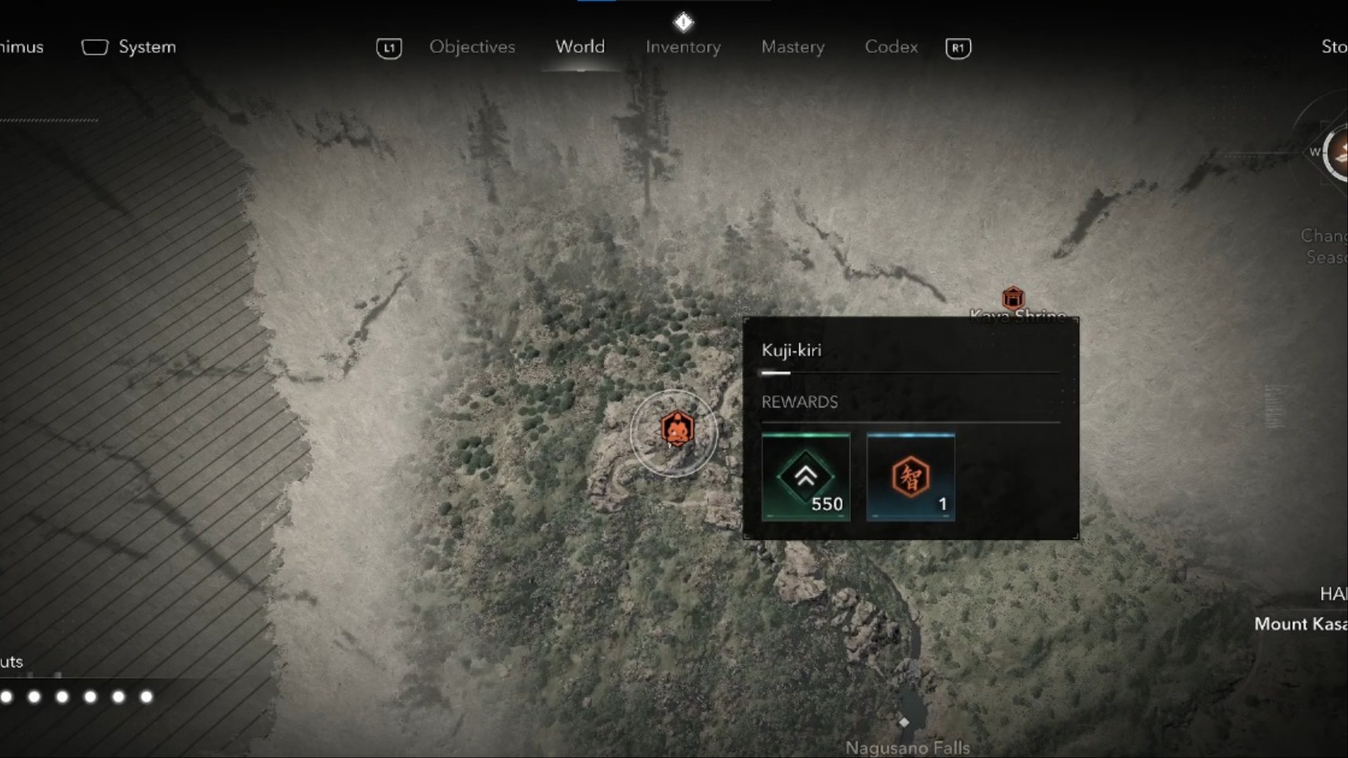 與大多數其他 Kuji-Kiri 地點一樣,Naoe 在完成 Harima 的 Peak Kuji-Kiri 後獲得 550 EXP 和 1 個知識點。您還可以前往東部的加耶神社祈禱並獲得額外的知識點。