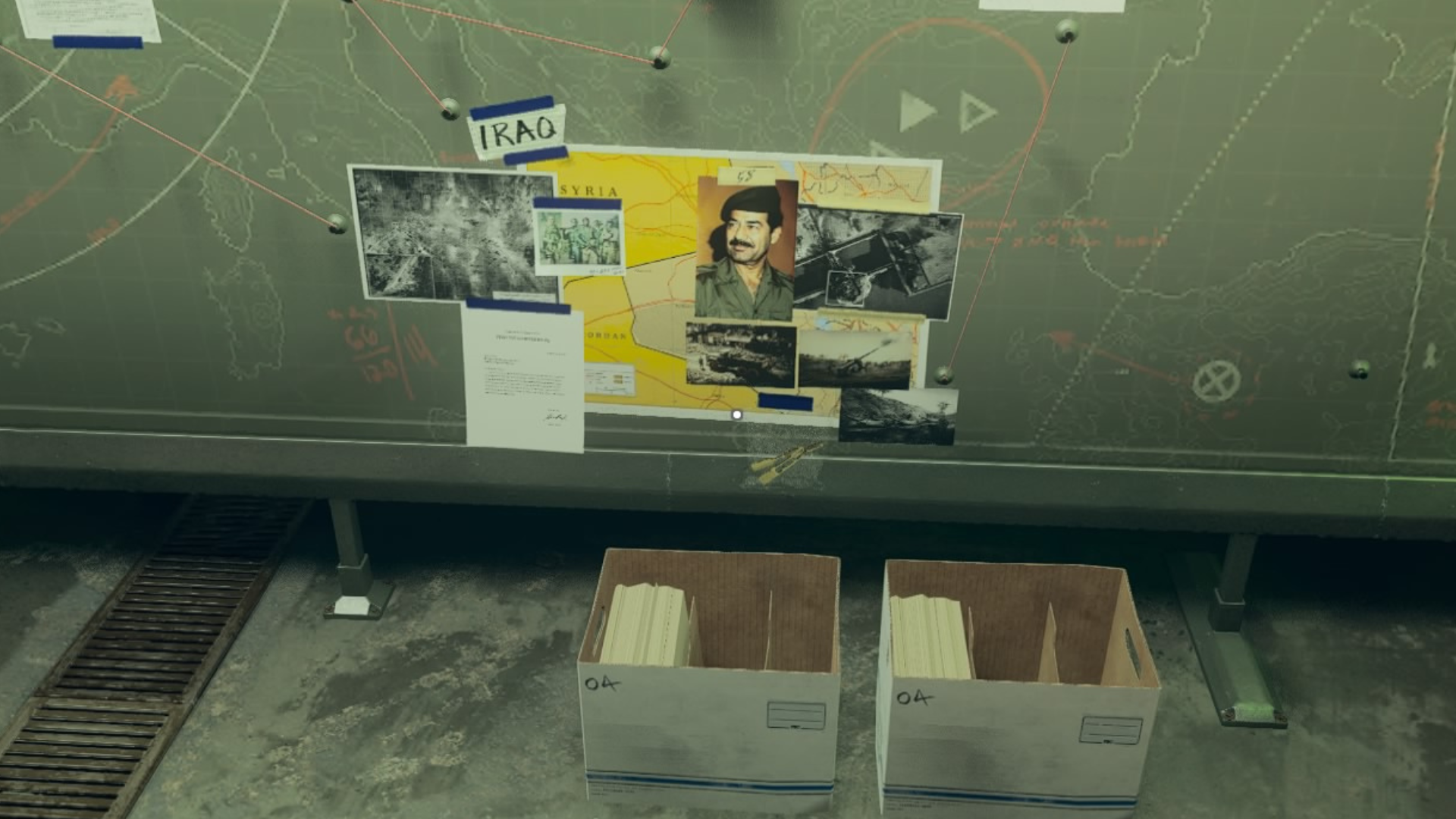 您可能會錯過的一個秘密是位於酒店的保險箱村莊紮營。進入最大的破舊建築,頂部懸掛著伊拉克國旗。一樓有一個小房間。使用“信號”幫助您導航到房間。收聽收音機,它會顯示安全密碼。退出房間,右轉,保險箱就在櫃子的盡頭,上面有米袋。打開它會給你 1000 美元作為你的安全屋。