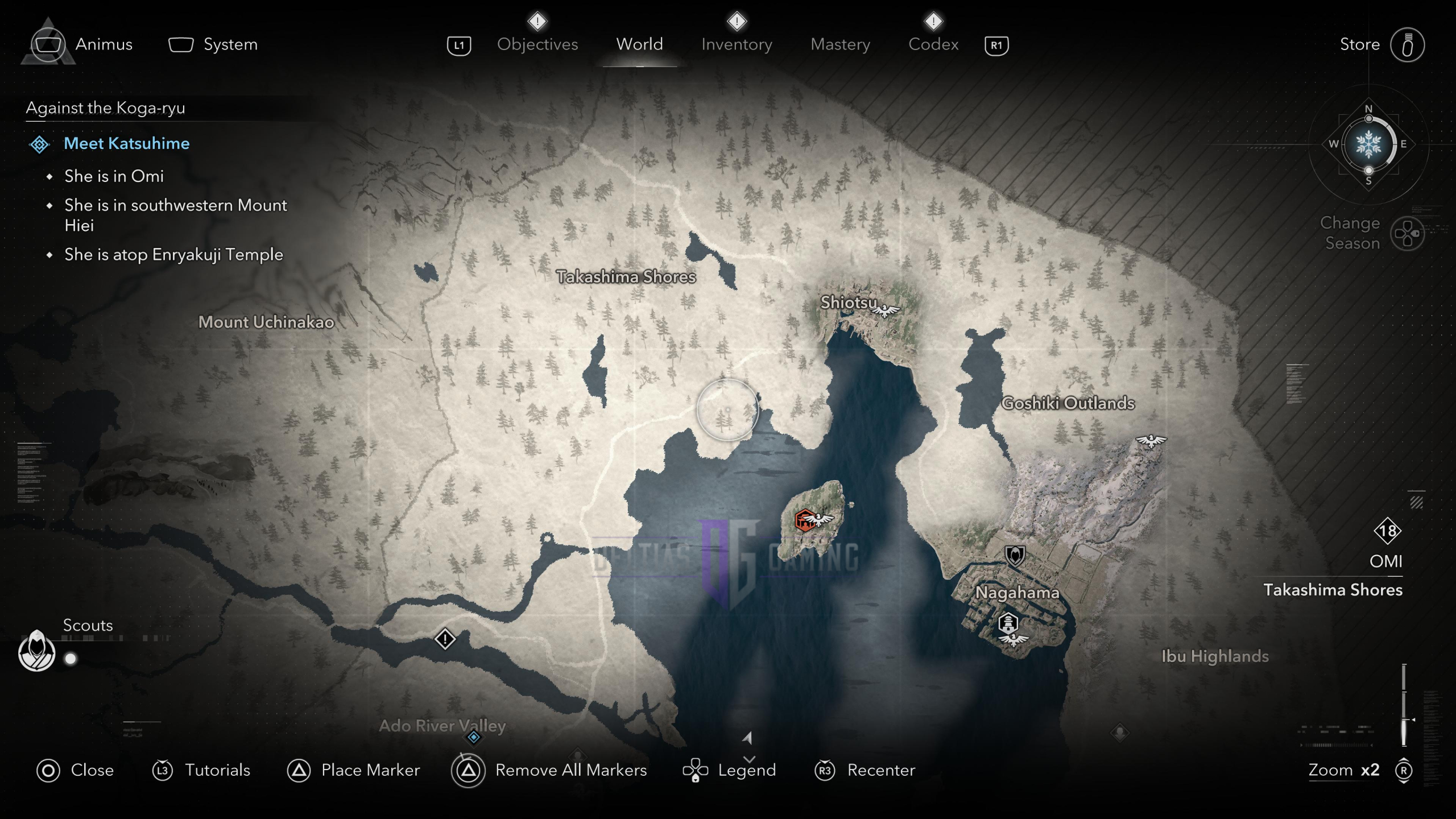 沿著與河流平行的方向走,在岸邊的東北側,就可以找到冥想點。天氣狀況取決於故事的進展。我們建議在直江故事的後面部分訪問近江地區,因為它是一個高級區域;對敵人的一個失誤就會導致生命值的大量損失。