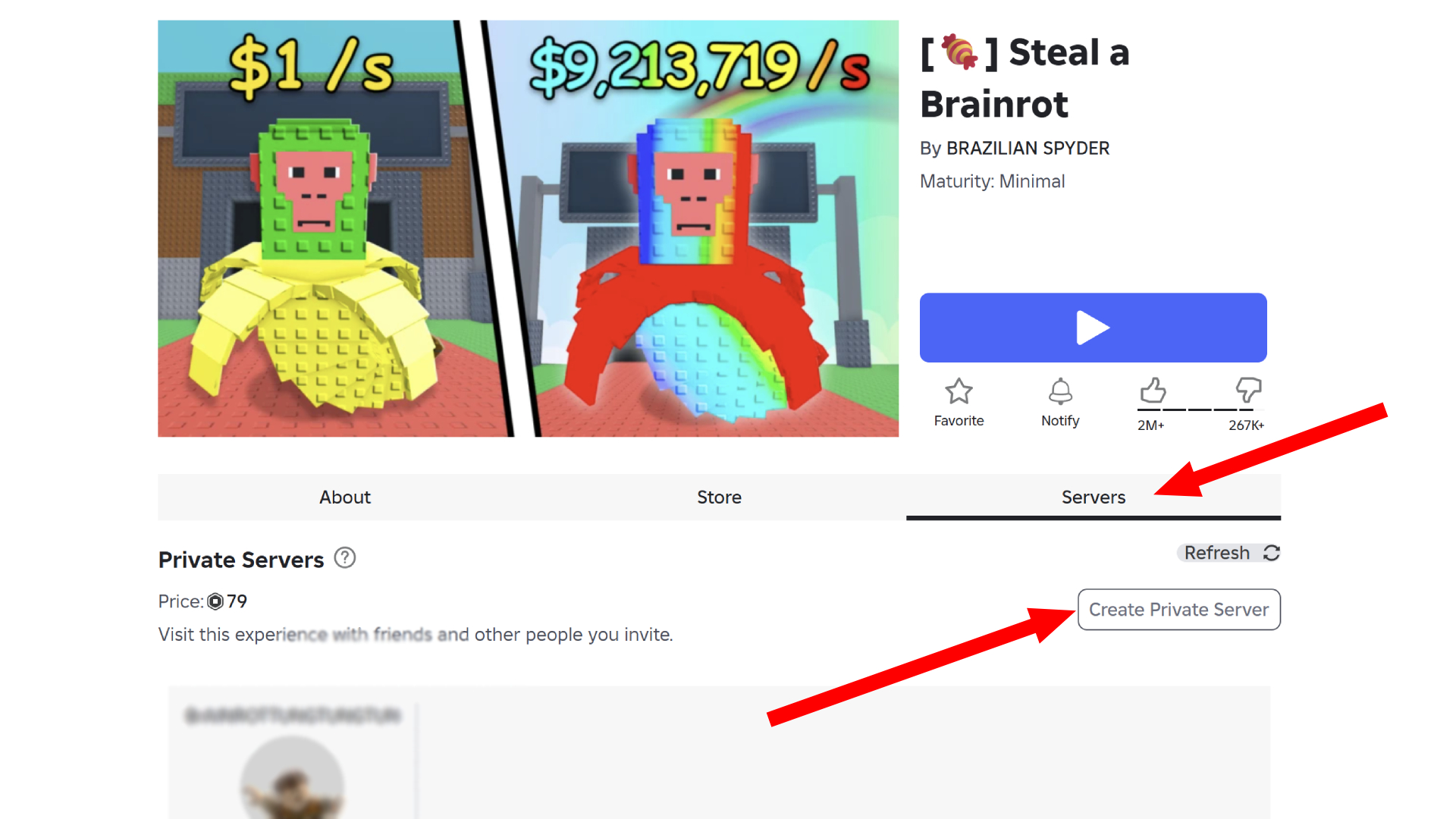 不幸的是,在 Steal a Brainrot 中創建私人服務器並不是免費的。您需要支付 79 Robux。或者,您可以嘗試加入屬於朋友的另一個私人服務器。請按照以下步驟創建服務器: