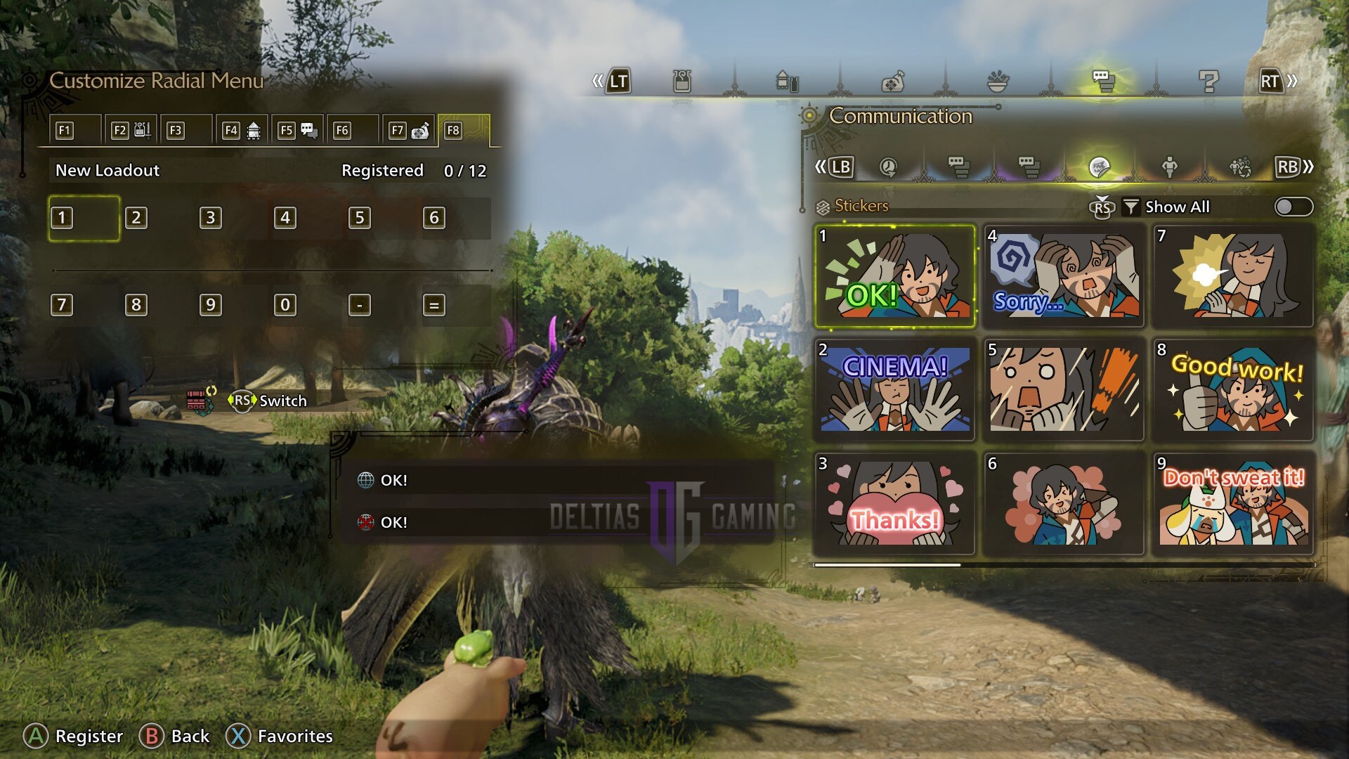 請注意,徑向菜單也用於治癒,求救,以及其他關鍵的遊戲元素。也就是說,以下是在《怪物獵人荒野》中訪問貼紙的步驟: