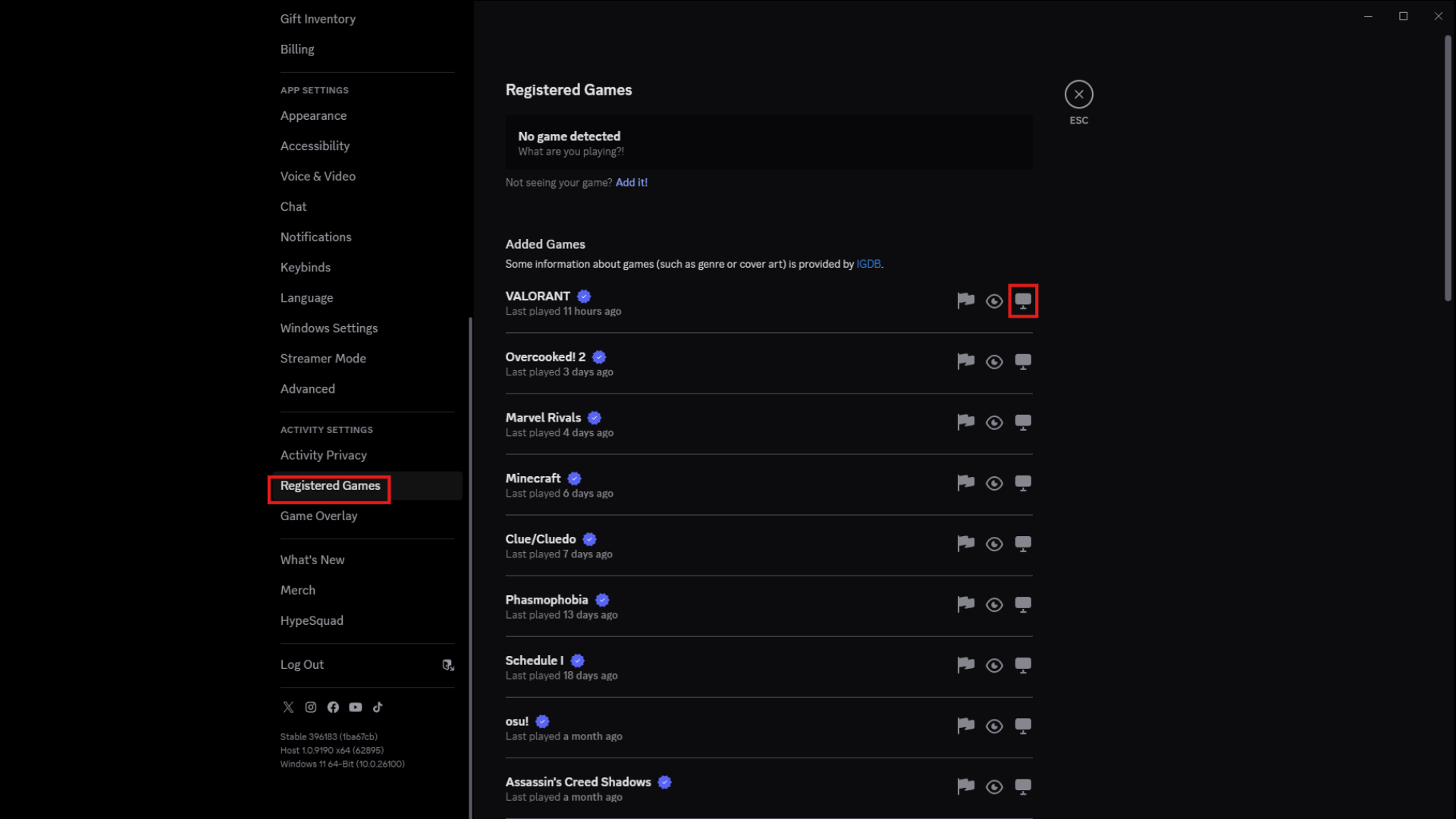 - 要禁用疊加層,請單擊遊戲名稱旁邊的監視器圖標。