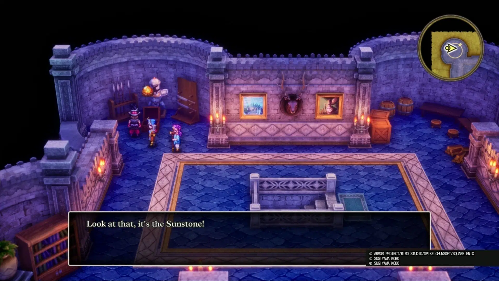 在創建彩虹水滴所需的三種物品中,日光石是最容易獲得的。要找到日光石,請與羅賓·烏德交談,他被鎖在坦特格爾教堂二樓的牢房裡。他會告訴你他已將該物品藏在城堡餐廳裡。與國王交談後,您可以使用東側的樓梯前往餐廳。餐廳位於城堡的二樓。你可以在房間的西北角找到裝有日光石的寶箱,靠近一件盔甲。