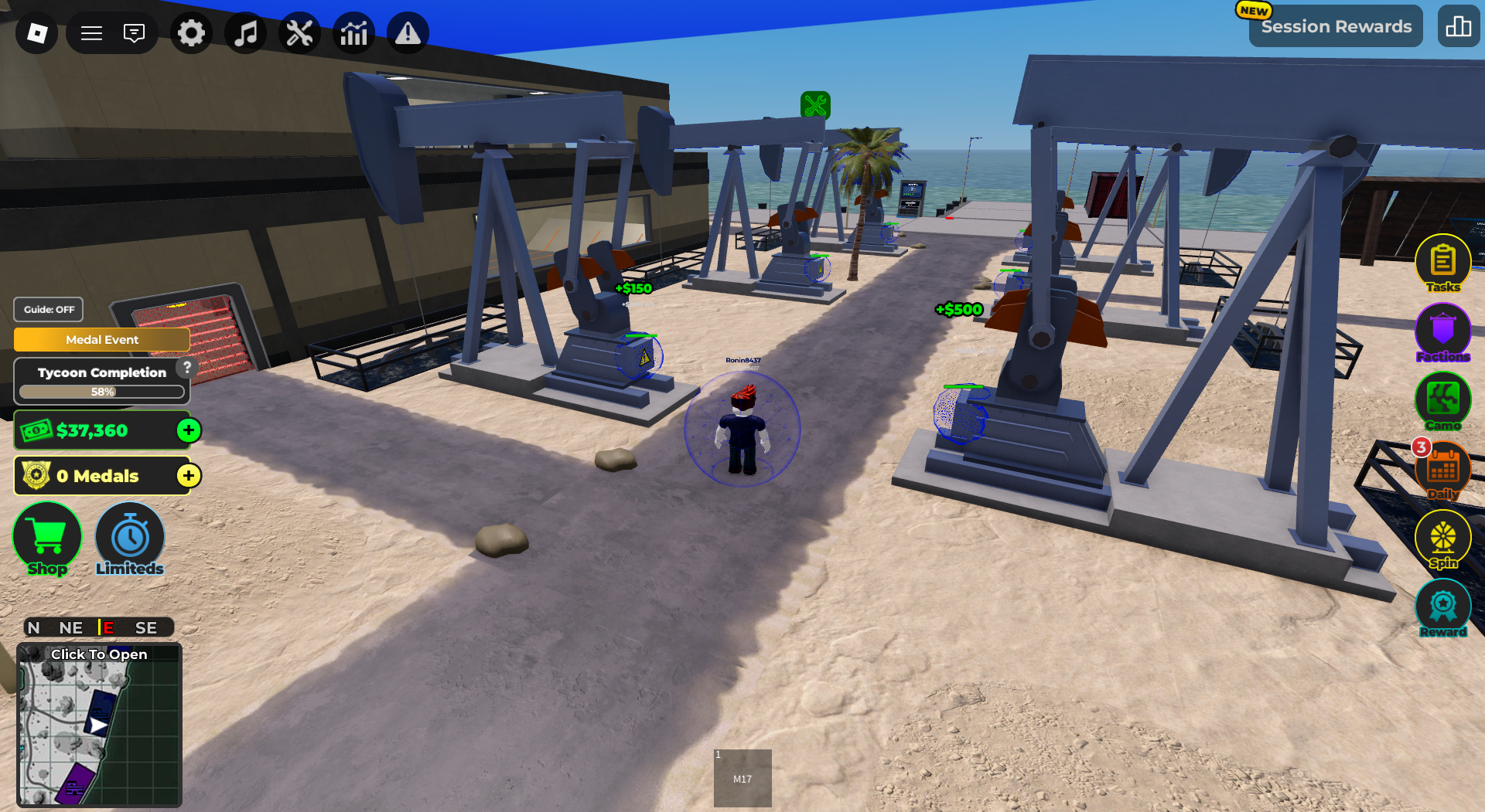 War Tycoon 是一款有趣的 Roblox 遊戲,您可以在其中成為自己軍事基地的老闆。你建造和升級你的基地,收集石油等資源,並解鎖坦克、直升機和飛機等炫酷的車輛和武器。該遊戲將基地建設與戰鬥混合在一起,因為你在戰鬥中與其他玩家競爭以控制地圖。