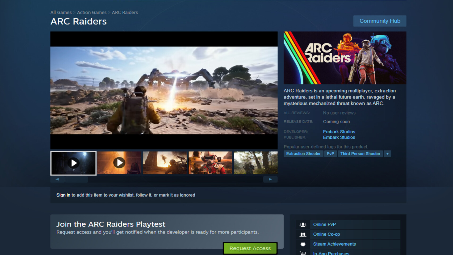 以下是您如何通過 Steam 請求訪問 ARC Raiders 遊戲測試:
