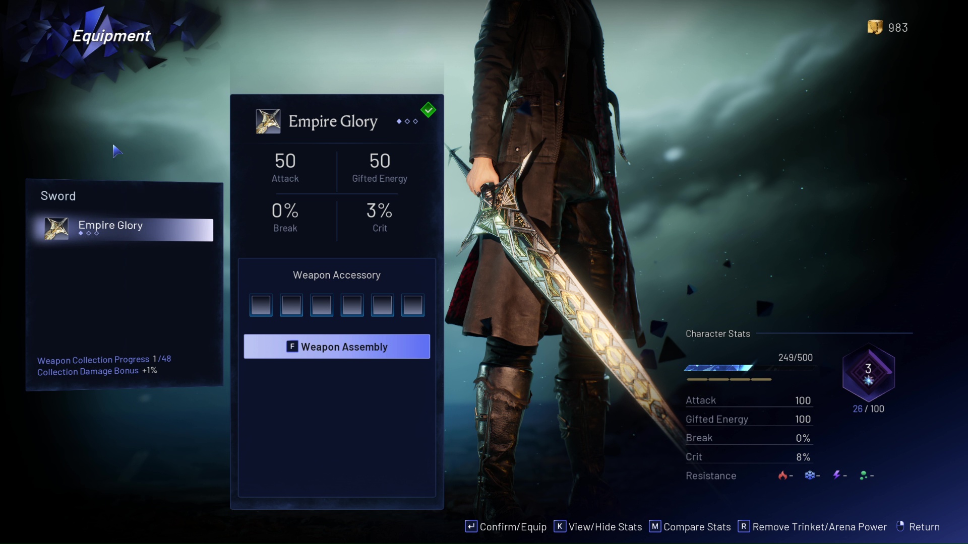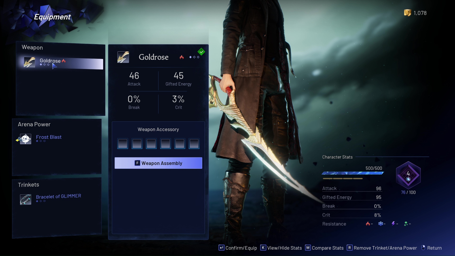 帝國榮耀是你唯一擁有的武器,直到你擊敗第二個老闆玫瑰女王,獲得金玫瑰。此時,您可以將武器更換為新的金玫瑰,也可以繼續使用帝國榮耀。對於飾品來說,到目前為止,閃光手鐲是你唯一的選擇。也就是說,它是有益的,並且與此構建具有非常好的協同作用。由於完美閃避對於此構建至關重要,因此您可以使用此飾品來疊加不錯的攻擊力。