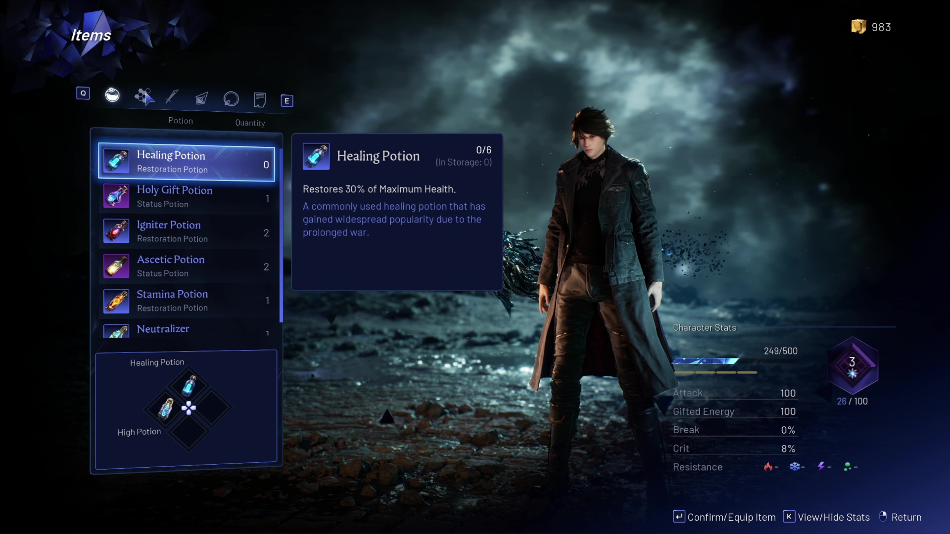 這個初學者版本專注於純粹的攻擊性,這意味著你必須在相當程度上掌握招架和閃避。如果你能保持攻擊性並正確地擊出連擊,你就不會真正損失很多生命值。只要你損失了一點點,你就可以使用消耗品輕鬆治愈它們。