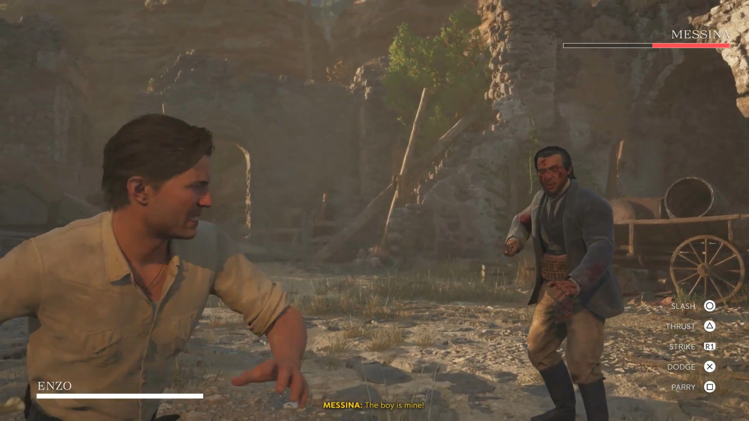 墨西拿擋住了我們的去路,用獵槍指著我們的臉。作為回應,我們舉起刀,敦促他照做。這引發了恩佐和墨西拿之間的本章最終 Boss 戰。梅西納是一位耐心的戰士,他會在適當的時候克制自己的攻擊並專注於防守。等待合適的時機,你就可以偏轉或招架他的發光攻擊。這時你可以進行一系列攻擊來減少他的生命值。