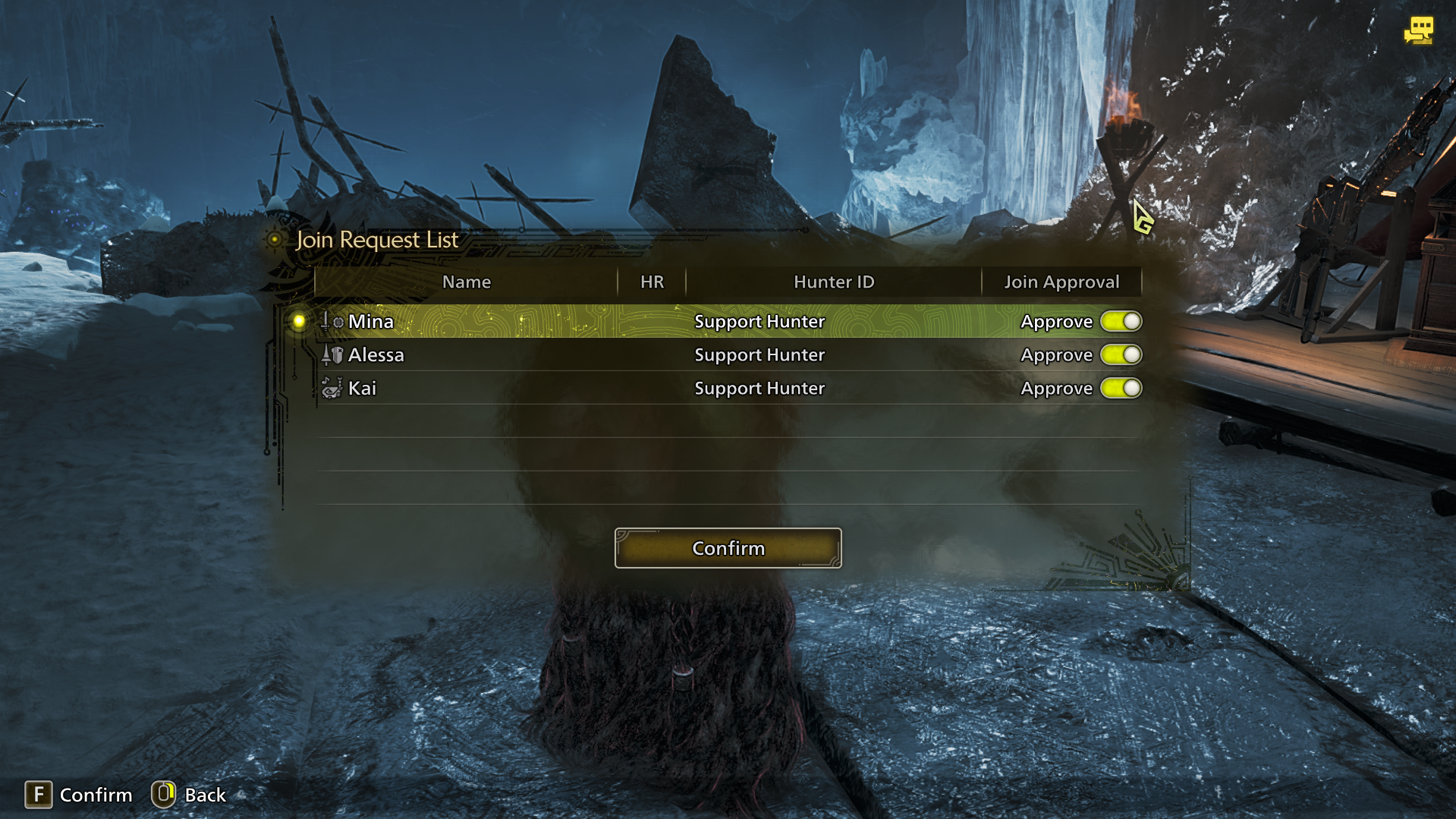 這裡的關鍵選項是手動接受你的朋友以及你在《怪物獵人荒野》中想要的支持獵人。這樣,嘗試通過 SOS Flare 任務加入的隨機玩家在被添加到大廳之前將需要您的許可。一旦你拒絕人工智能支持獵人的權限,他們將不會在餘下的狩獵中出現。因此,在手動接受或拒絕請求時要非常小心。
