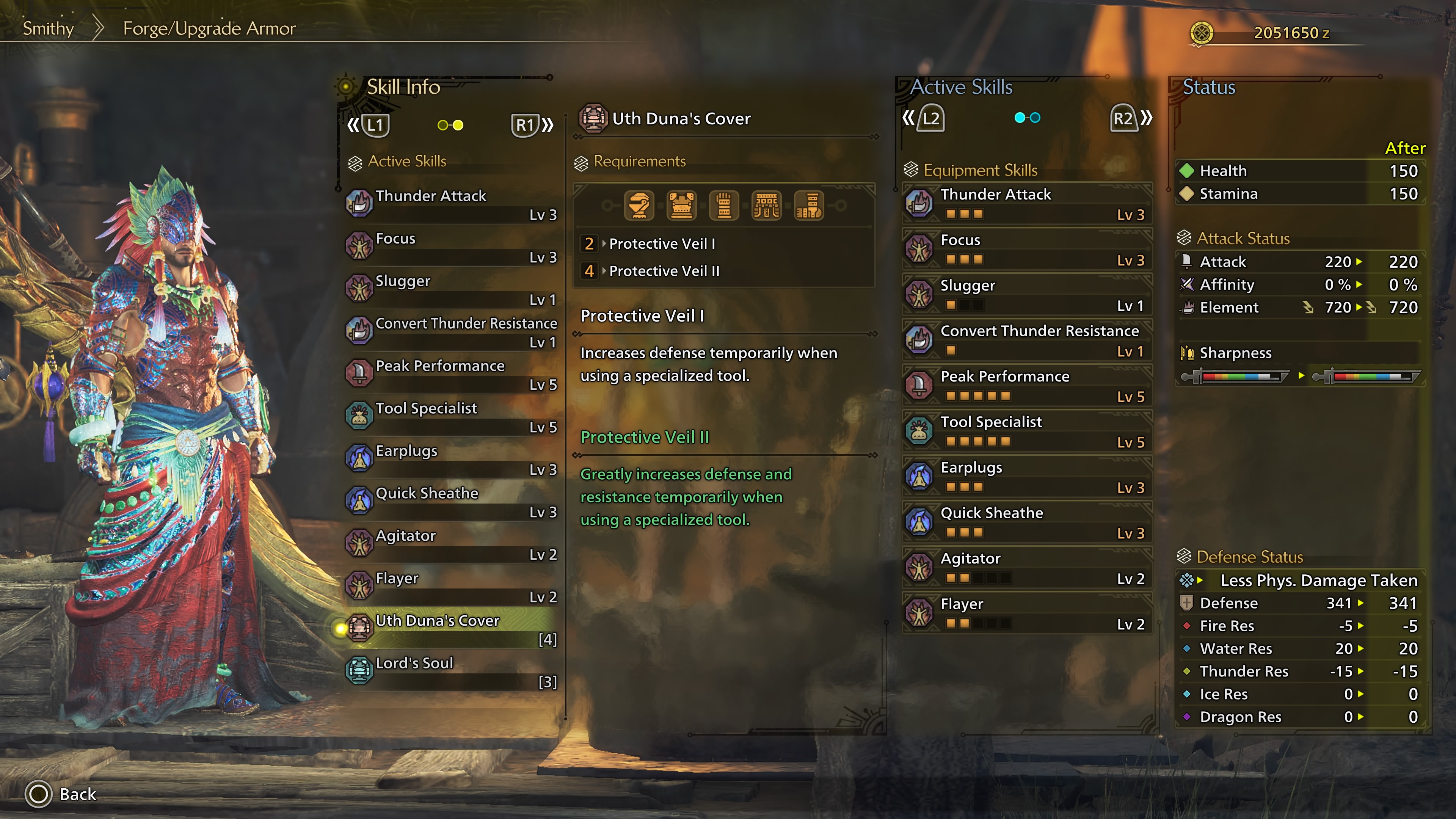 - Uth Duna 的封面:使用專用工具(斗篷)時增加防禦力。