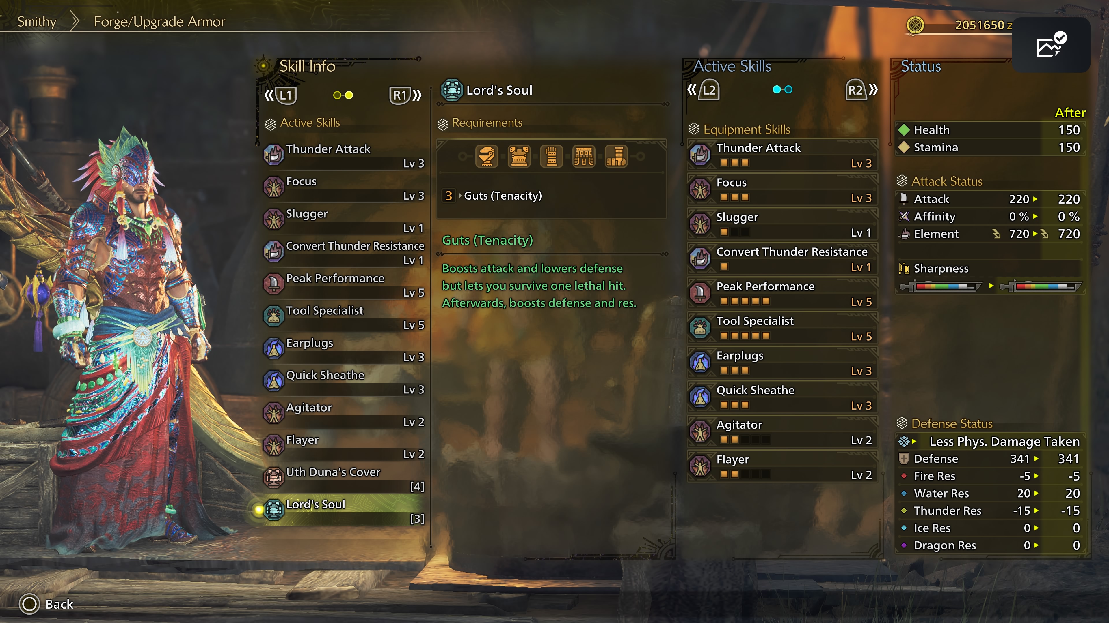 Uth Duna γ 盔甲套裝具有三個主要屬性 - 峰值性能、耳塞和工具專家。然而,與常規的 HR Uth Duna 盔甲不同,所有這些技能在默認情況下都會在完整的 Uth Duna γ 套裝中有效發揮到最大。尤其是耳塞,是一個非常優秀的技能,在3級時可以消除所有怪物的咆哮。巔峰表現也是一項很好的技能,儘管考慮到了非常具體的遊戲風格。此外,在當前版本的《怪物獵人荒野》中,峰值性能並沒有在滿血量時提供預期的統計提升。然而,它仍然是一個很好的被動選擇,可以保留像長槍、槍槍甚至衝鋒之刃這樣的武器。