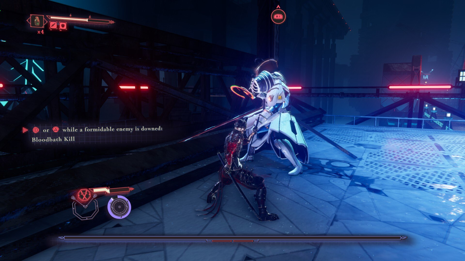 DDO 指揮官是《忍者龍劍傳 4》中的第一個主要 Boss。雖然他並不是特別困難,但即使在難的,他確實要求你的閃避要精確。 Boss 本質上是精英 DDO 士兵的更強大版本。 DDO 指揮官基本上有兩個你需要注意的組合 –寬斜線和帶電斜線。