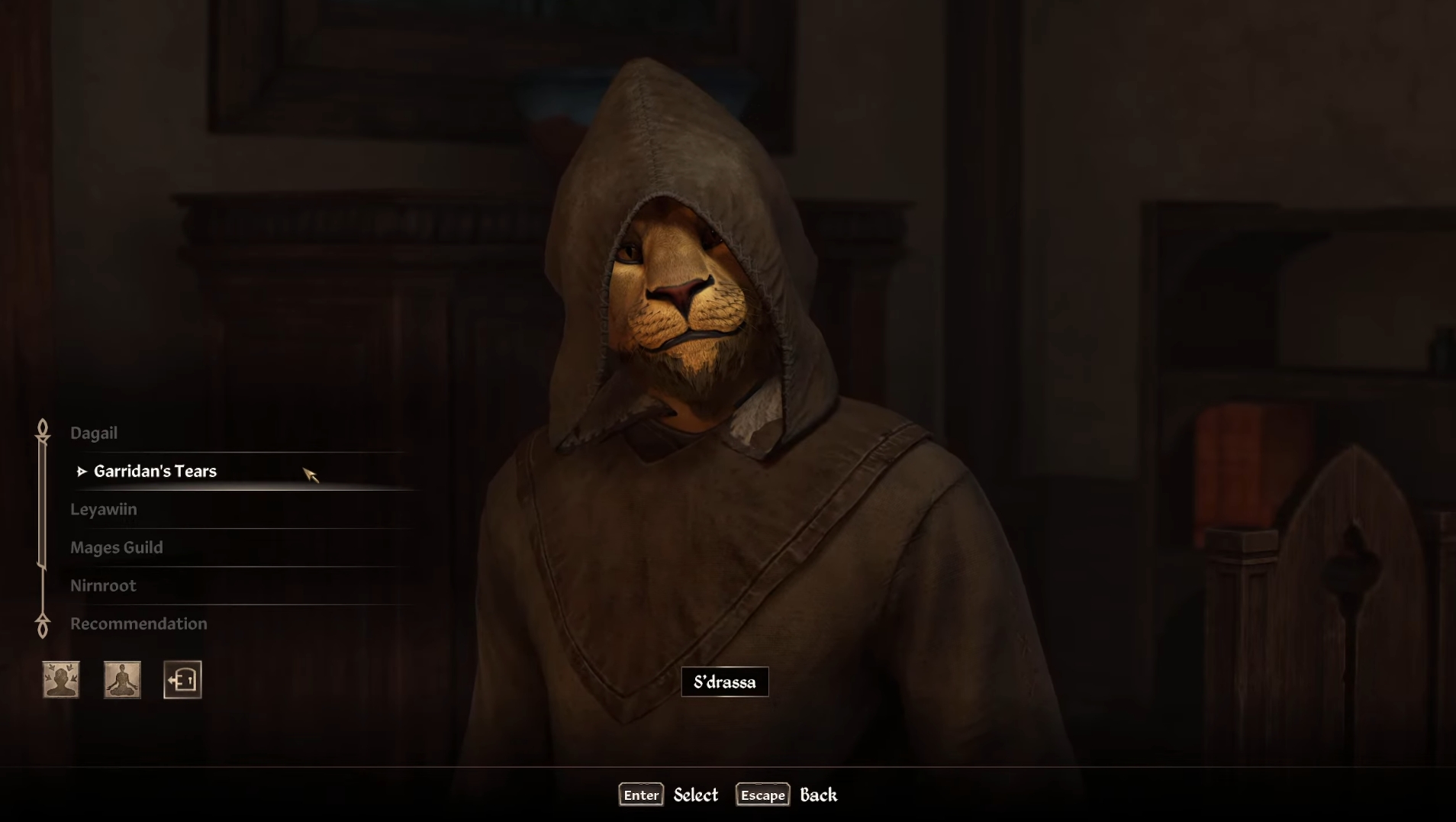 要開始“救世主之淚”,請與 Leyawiin 法師公會的 S'drassa(卡吉特)交談。他會興奮地要求你獲取加里丹之淚,這是在霜火林地中發現的魔法水晶。要了解有關如何獲得它們的更多信息,他將向您介紹奧術大學的 Julienne Fanis。