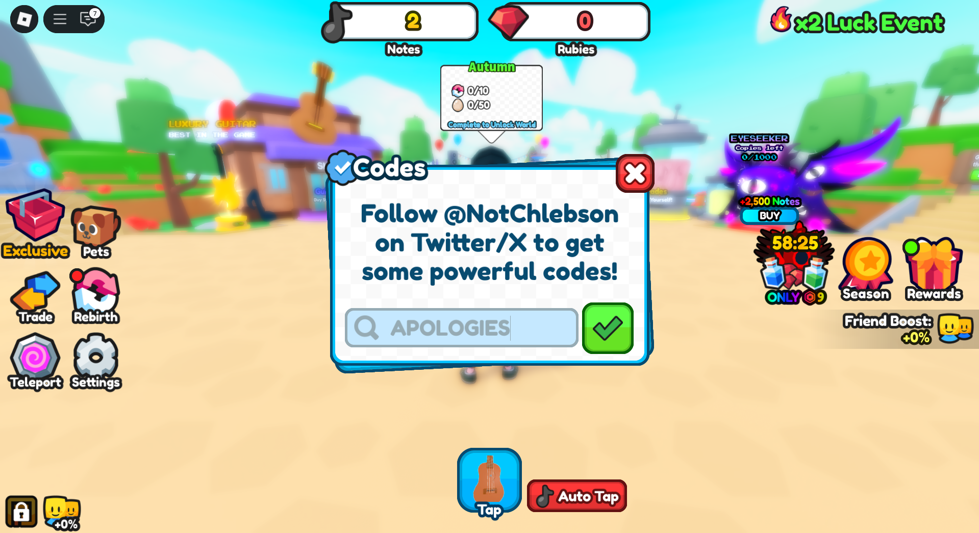 這些代碼通常會為您提供紅寶石(遊戲中的金錢)以及特殊藥水,可幫助您玩得更快或在即興演奏時賺取更多紅寶石。