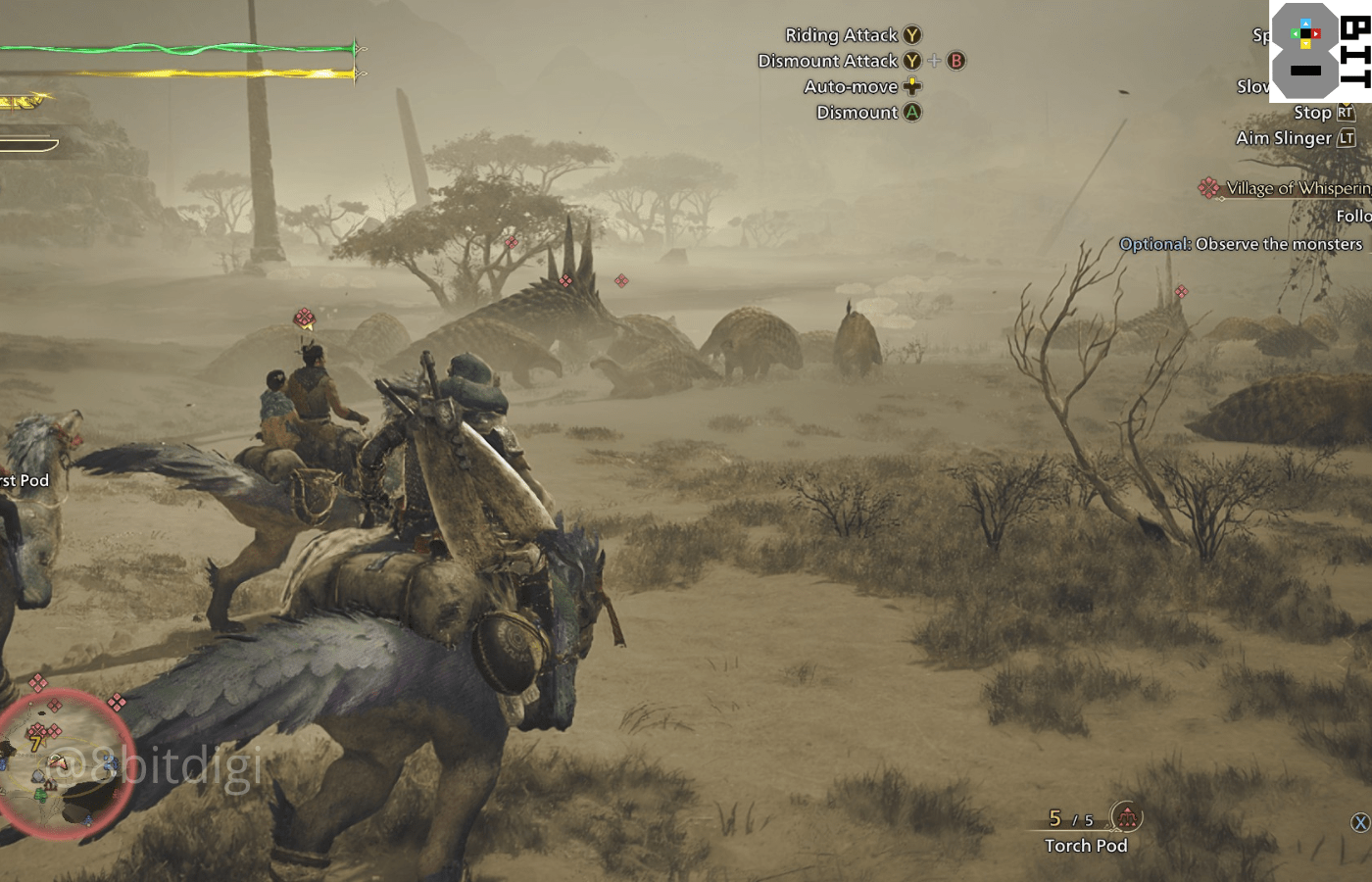 禁地分為幾個生態系統,每個生態系統都充滿了怪物和由環境塑造的植被。這種多樣性帶來了各種各樣的生物和獨特的挑戰,這將考驗玩家的技能。在你的 Seikret 的幫助下,在這些世界和營地之間穿梭是一個順利的過程。環境之間也沒有負載,確保旅程保持活力。你的營地是一個中心,你可以在這裡購買物資、升級裝備和執行任務——無論是完成主要任務還是加入多人狩獵。