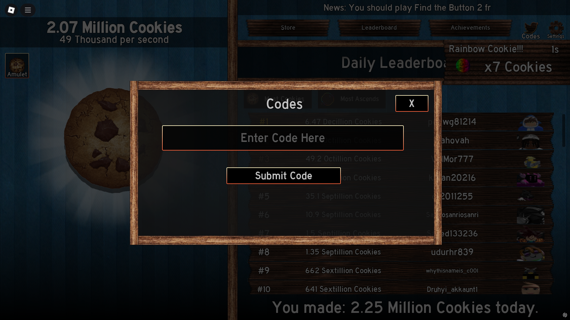 它們是開發人員發布的代碼,可為您提供免費獎勵,例如點擊、提升或金色餅乾。