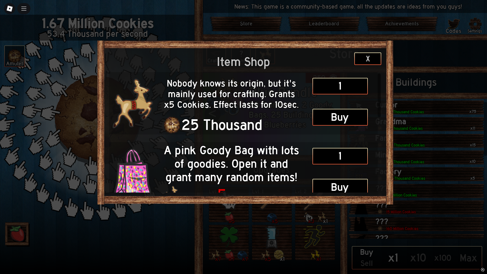 Roblox Cookie Clicker 是一款有趣且令人上癮的閒置遊戲,其靈感源自原始瀏覽器經典。在此版本中,您單擊一個巨大的 cookie 即可賺取貨幣、購買升級並自動化您的 cookie 生產。你升級得越多,你的帝國發展得就越快。