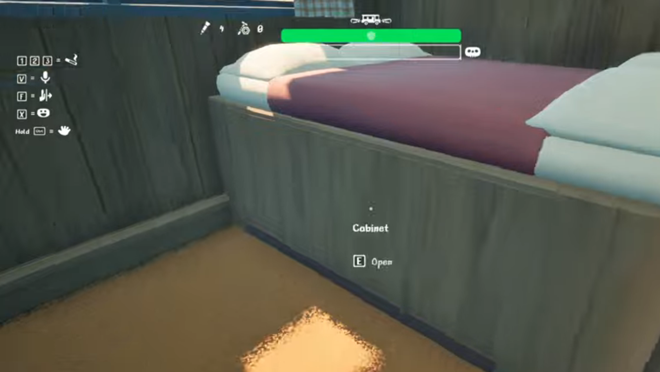 - 如果尚未進入房車,請進入房車並朝後面走。您會注意到床正下方有一個艙口。