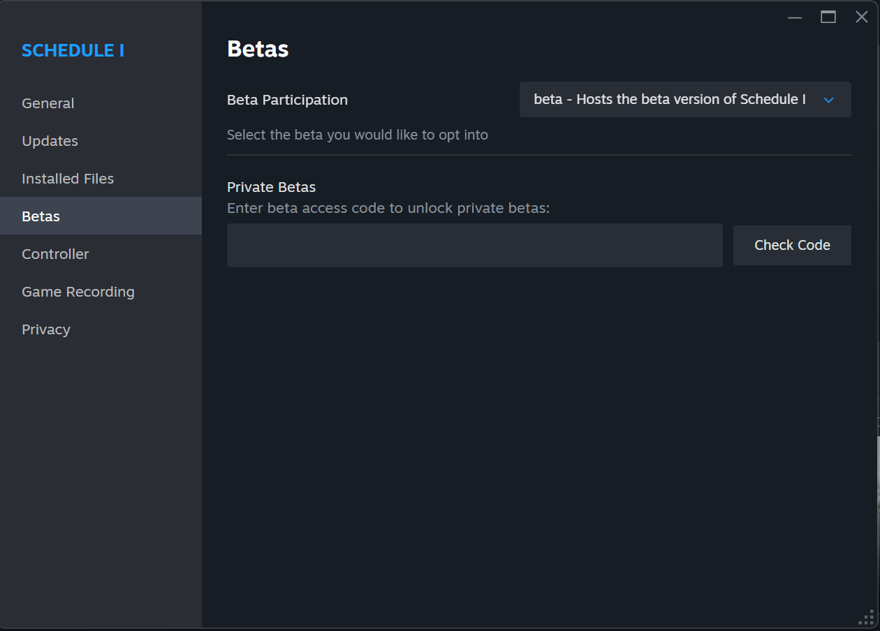 要玩遊戲的穩定版本,請在“Beta 參與”選項卡中恢復為“無”。如果您想訪問已保存的主文件,請務必遵循此過程。一旦完整版本 v0.4.1 可用,您就必須執行此操作。