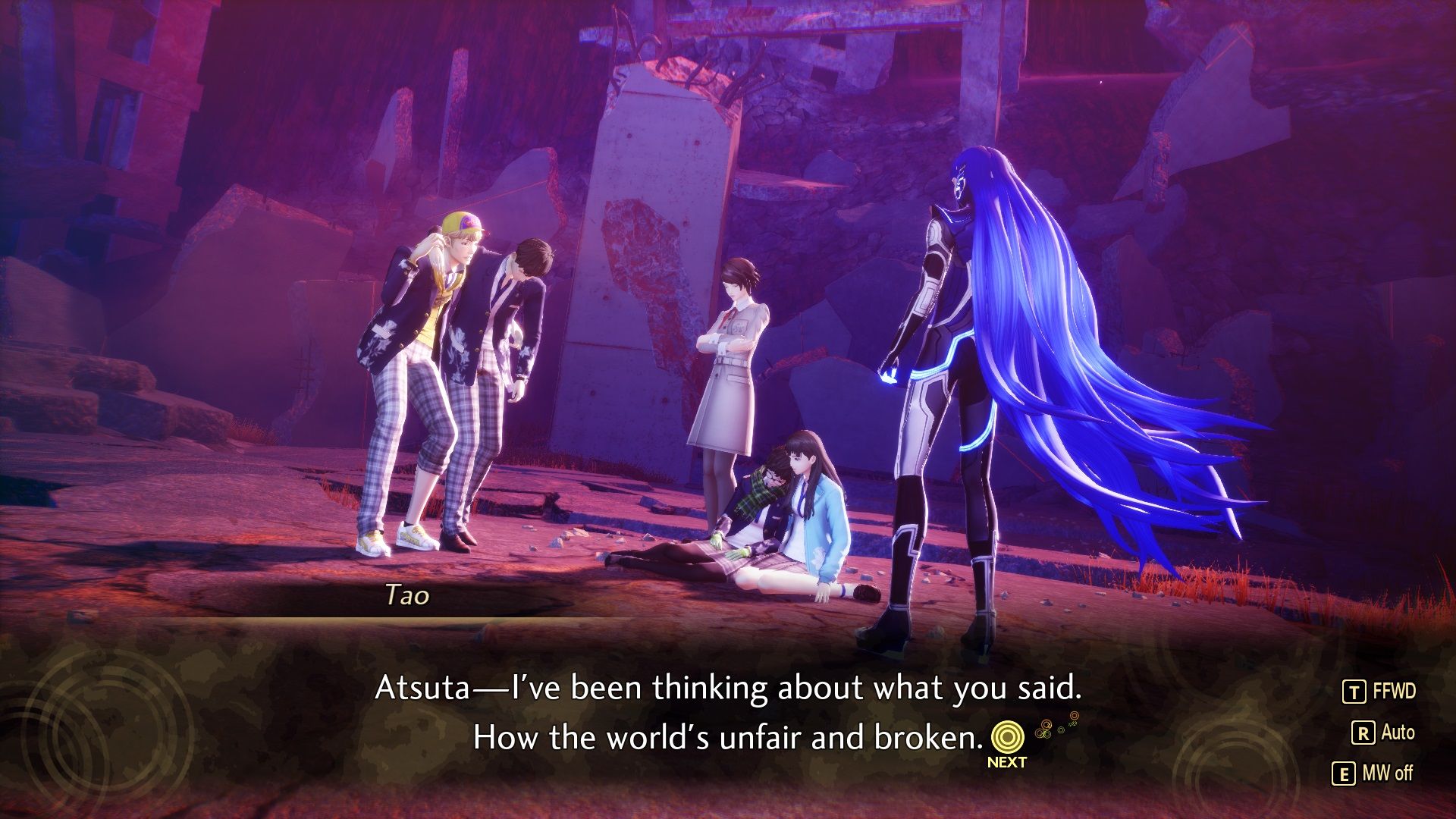 該遊戲具有令人愉快的怪異音景。而且配音還是很紮實的,尤其是惡魔的配音。細緻入微的世界末日環境提供了一些真正壯觀的景色。漫遊沙漠、東京廢墟和更多異國奇幻場景的感覺棒極了。 Da'at 還有一個全新的區域可供探索,其獨特的視覺風格。 Magatsu Rails 使回溯變得更加容易。