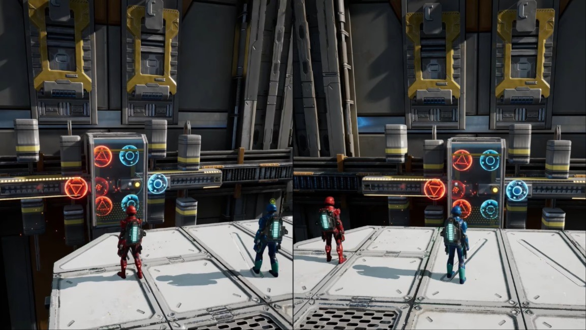 這個謎題一開始可能有點難以理解。你首先註意到的是,兩個玩家都有自己的謎題,而且彼此相同。然後,您可以看到兩個有節奏地上升和下降的開口。為了解決這個難題,雙方玩家都必須: