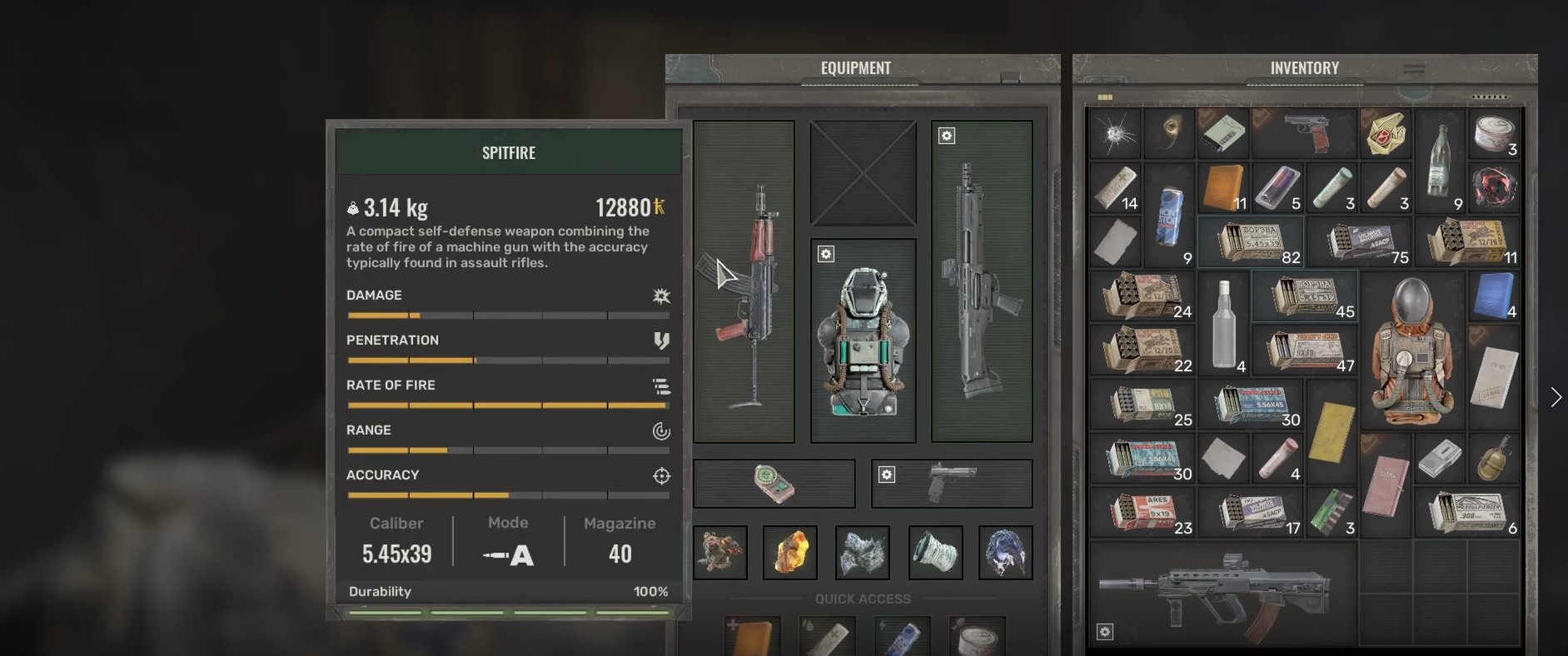噴火戰鬥機的重量並不重,並且改進了槍托,增強了瞄準能力和移動速度,使其成為喜歡機動性的玩家的最佳選擇。它能夠對付近距離和中距離的敵人。然而,射速和精度的結合使其成為對抗敵對派系或危險變種人的可靠武器。該武器具有獨特的外觀和故事,為您的角色增添了獨特的個性。 STALKER2 中的噴火式戰鬥機比遊戲早期的標準槍支提供了明顯的優勢。