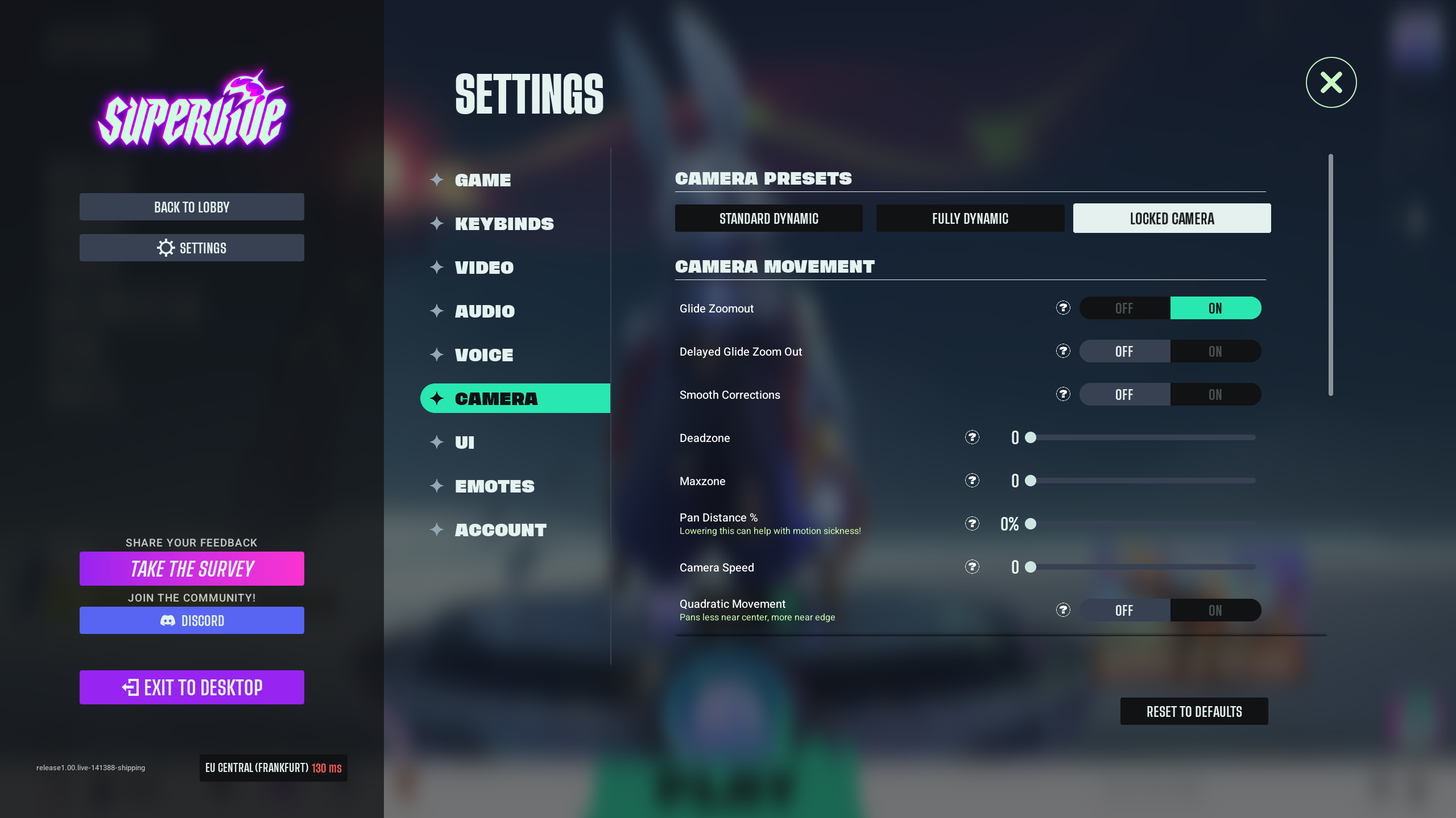 鎖定的攝像頭預設使您有一個非常傳統的,肩膀的追逐凸輪的感覺。您幾乎沒有自由移動相機。這是在競爭性場景中使用的預設,您需要更少的干擾和更一致的角度。