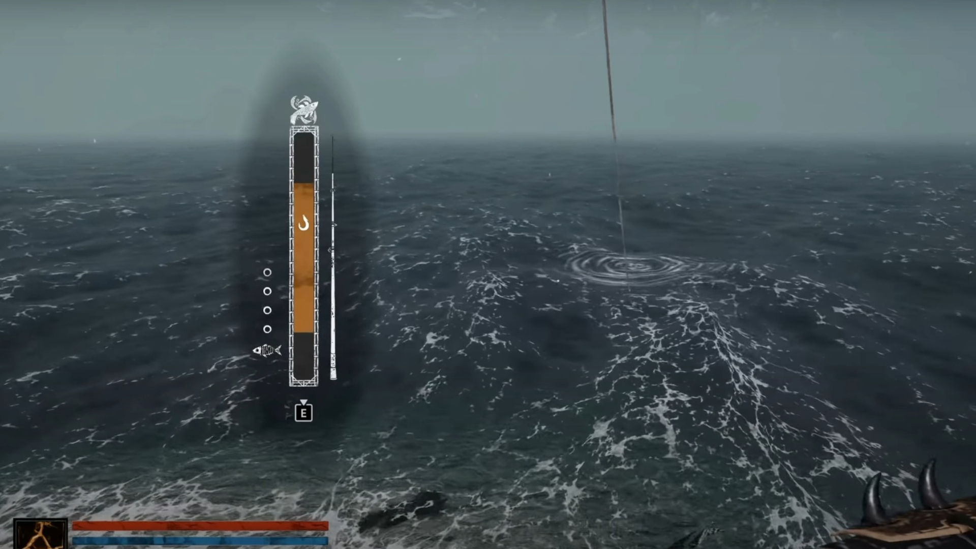 您需要前往標記的島嶼位置獲取鯡魚。到達那里後,您會發現方便地放置著一艘船和釣魚竿。用竿將線拋入水中,等待魚咬鉤後再收線。