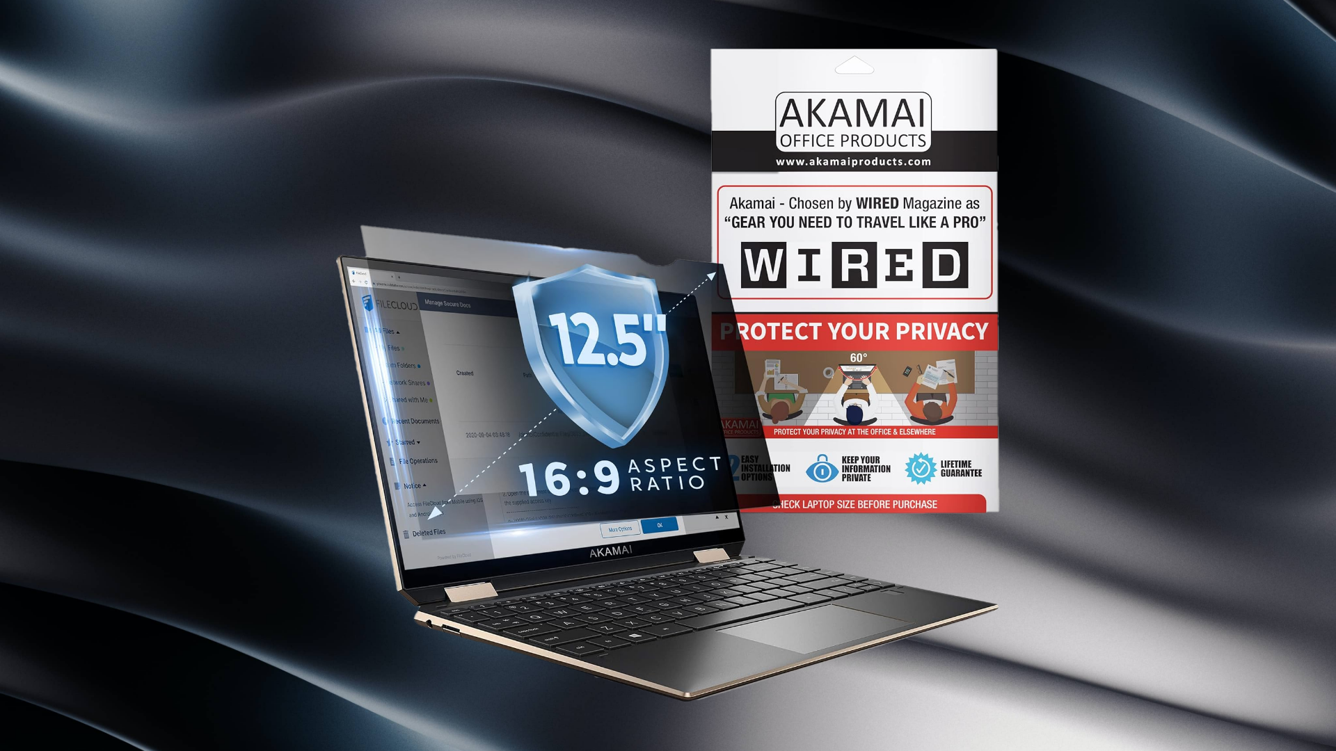 Akamai 開發了一種隱私過濾器,可以將任何寬屏筆記本電腦變成安全站。它通過使顯示屏的視角比 30 度更暗來實現這一點。這種有限的視角使人們無法嘗試查看屏幕上的內容。