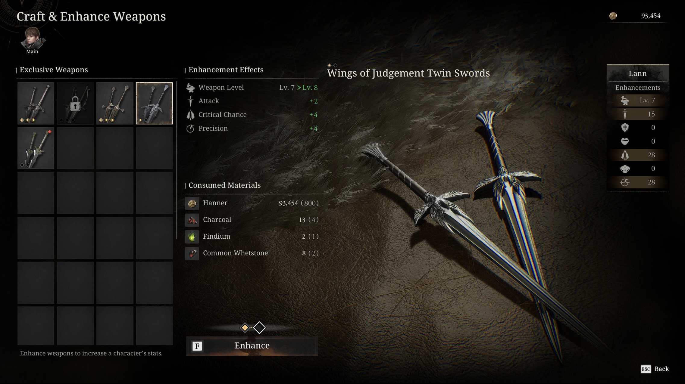 武器強化需要材料和漢納的形式的成本。特定武器的升級等級有上限。這有助於維持武器之間的平衡,使每種武器的技能和統計數據保持獨特。