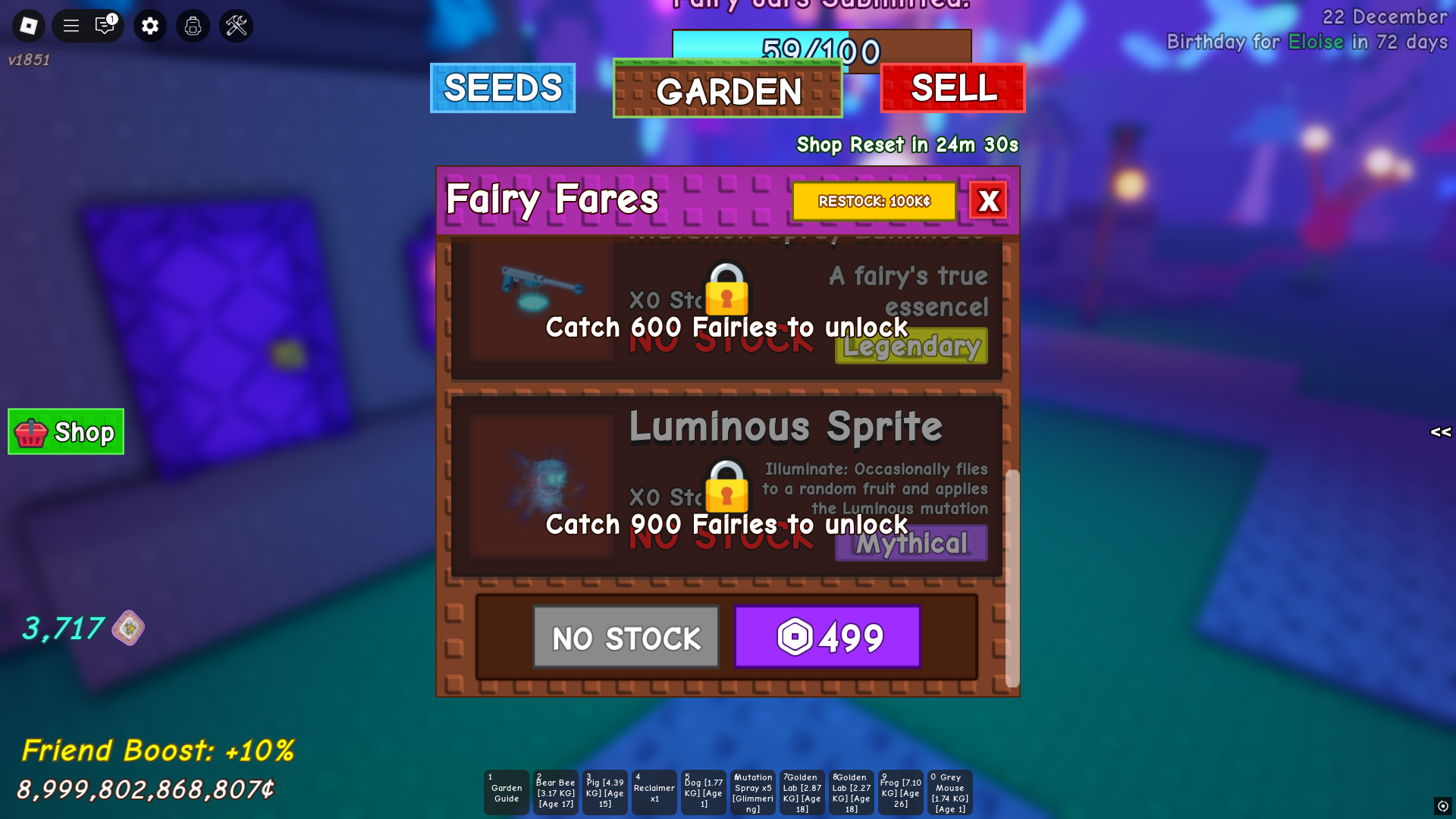 - 購買發光精靈:花費 80,000 仙女點或 849 Robux。