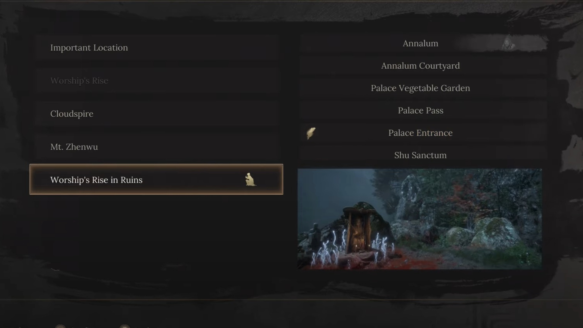 你只能在第 3 章末尾與講故事的人交談,跨越不歸路後才能解鎖這些。一旦你這樣做了,你將無法再進入原來的崇拜崛起區域。在本指南中,我們將探索在武昌落羽的廢墟神殿中可以找到崇拜之地的位置。